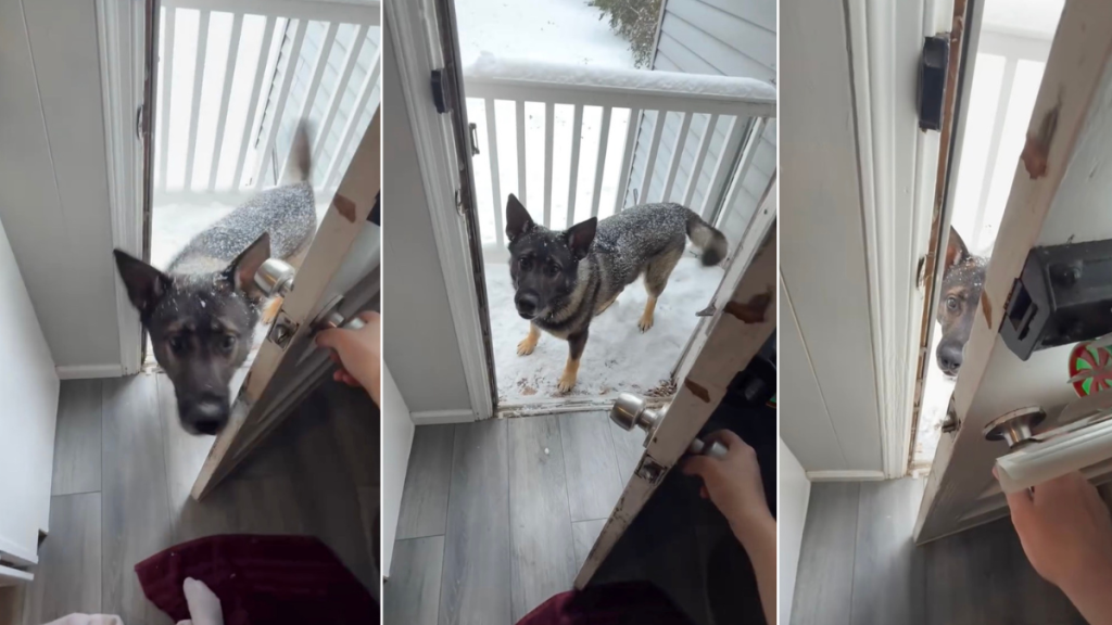 Video shows German Shepherd Dog refusing to come in from snowy weather outside