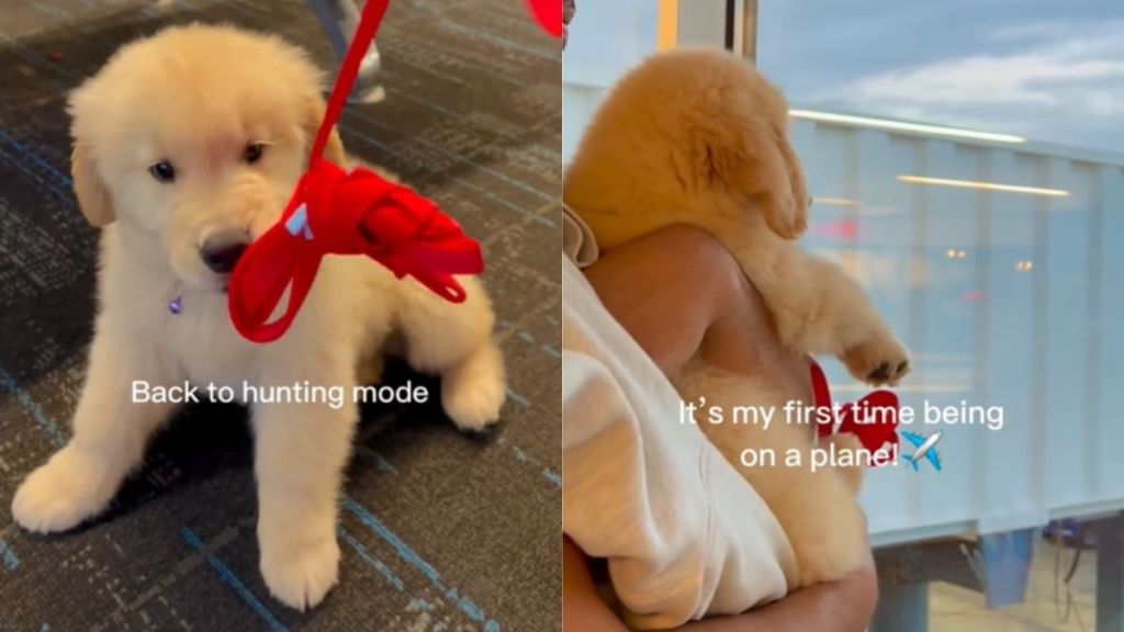 A Golden Retriever puppy’s first airport experience has melted hearts online after a charming video captured his curious reactions to everything around him before his first plane ride. The adorable clip follows a tiny pup named Mango as he explores the airport, meets strangers, plays games with his owner, and eventually curls up for cuddles before boarding his plane.