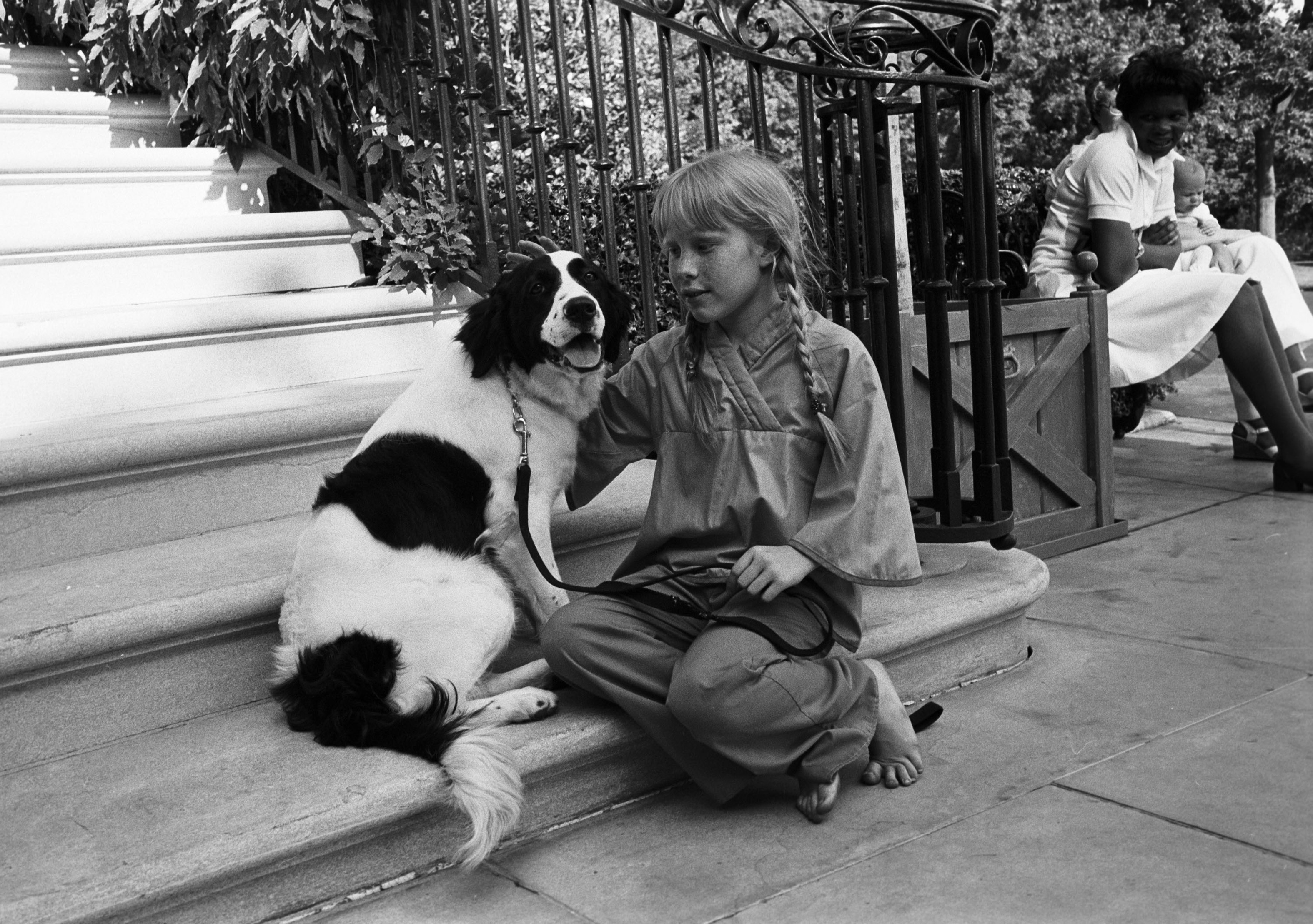 Jimmy Carter had two dogs, a Border Collie named Grits and an Afghan Hound named Lewis Brown. Grits, however, lacked in the behavior department. Thus, his stint at the White House was short-lived. In addition to being poorly trained, Grits apparently didn’t get along with Amy Carter’s cat, Misty Malarky Ying Yang. Grits and Amy are pictured above.