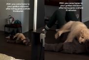 Golden Retriever is flustered watching dad’s actions in viral video