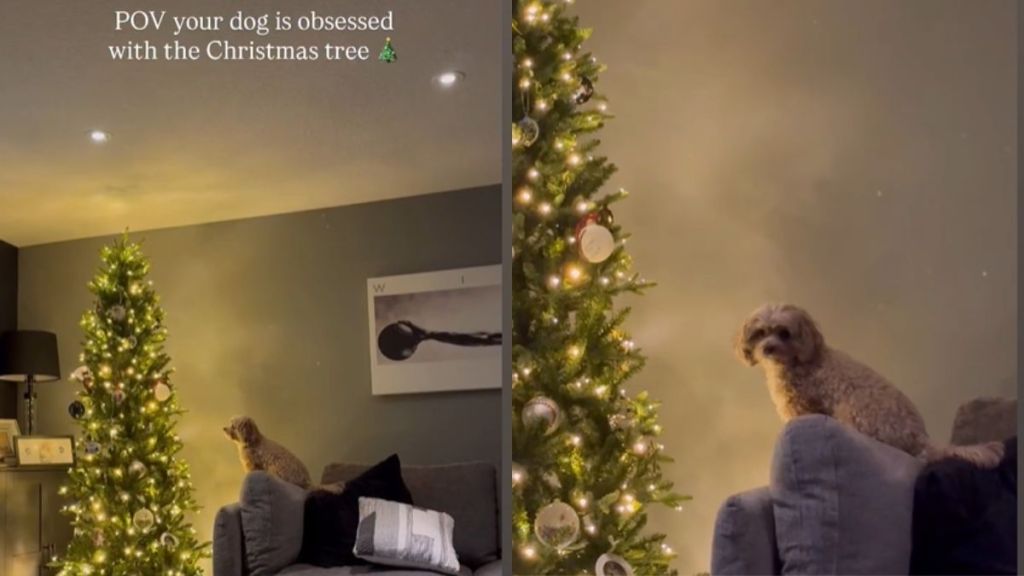 If you’ve ever lived with a small dog who forms very strong opinions about household décor, you’re going to feel this one in your soul. The moment the Christmas tree goes up in Benji’s house, he basically declares it the most important thing in the room — possibly on earth.