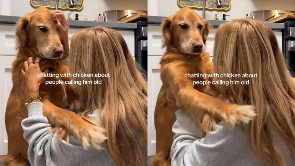 In a cute dog video on Instagram, an owner talks to her Golden Retriever named Chicken about people calling him “old.” The dog mom holds the furbaby close and scratches him to make him feel comfortable.