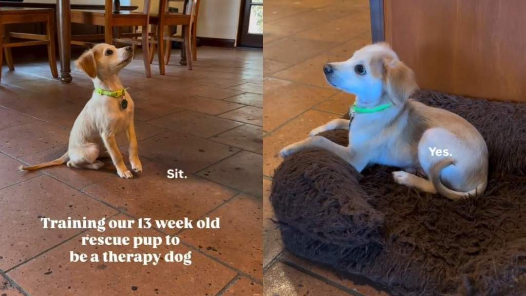 Owner trains ‘patient’ rescue puppy to become a therapy dog in video