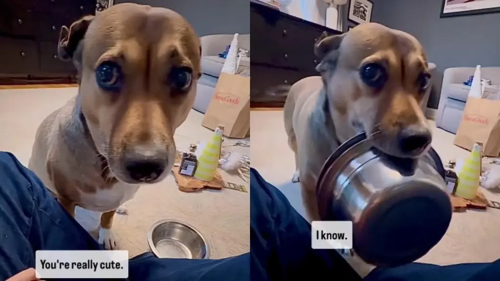 According to the clip, it is not her dinner time yet, which seems to have left the pup disappointed. Although the pet parent tries to convince the dog that it is not time for her meal yet, her puppy eyes are difficult to ignore.