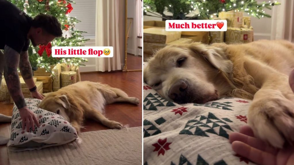 Owner helps senior dog sleep on his ‘favorite Christmas pillow’ in video