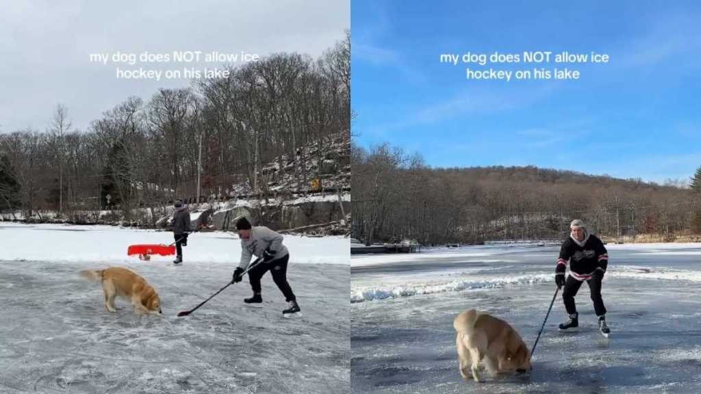 Golden Retriever doesn’t allow ice hockey on ‘his lake’ in cute video