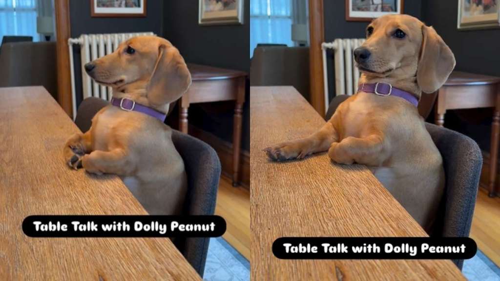 This cute Doxie is all about table manners. A video shared by @dolly_peanut_dachshund shows the Dachshund sitting upright at a table like a human and engaging in “table talk” with her mom. The furbaby appears completely intrigued by the topic and stays engaged in the conversation, making proper eye contact with her mom and leaving viewers thoroughly impressed.