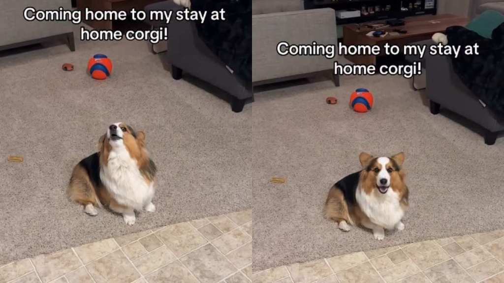 The second his mom squeals, “Is that Walnut?,” it is basically over. He lets out this massive, legendary “awoo” that fills the entire room. His mom actually mentioned in the caption that she “haven’t had an awoo from my Corgi in a while,” and that’s true.