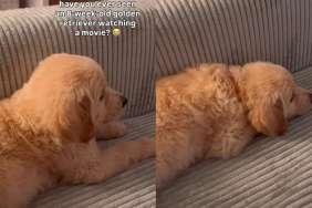 The on-screen caption explains, “My dog loses me in the house…panics for 3 seconds…then finds me and gets mad.” In the video’s caption, the owner admits they are still trying to read the dog. She wrote, “Can’t tell if he’s mad or happy, or both?”