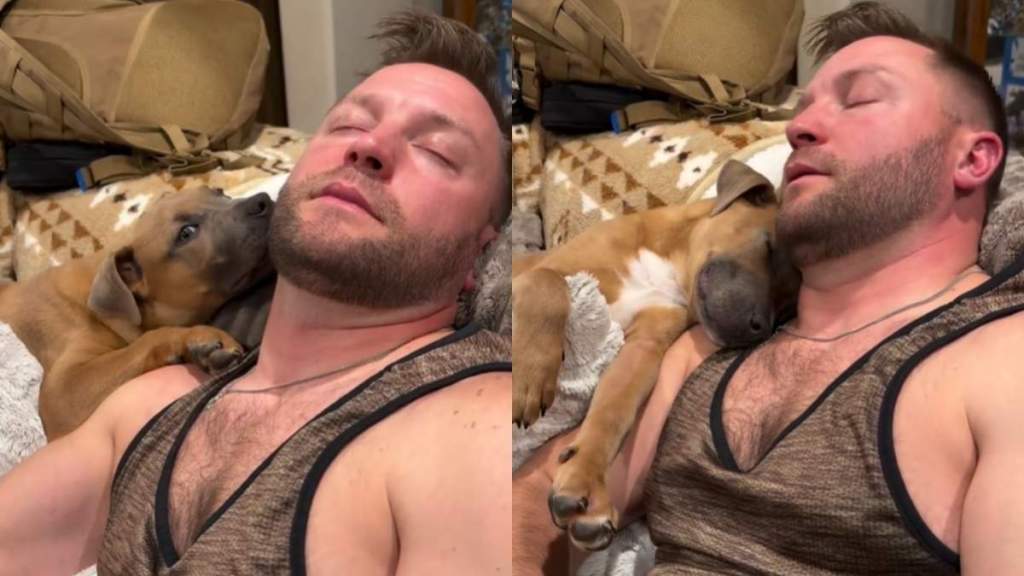 One person in the comments said he is already doomed. Another fan called him an animal whisperer. He is trying so hard not to love her. But she is already wearing him down. “I’m not even a dog person,” he says while she is nestled against him.