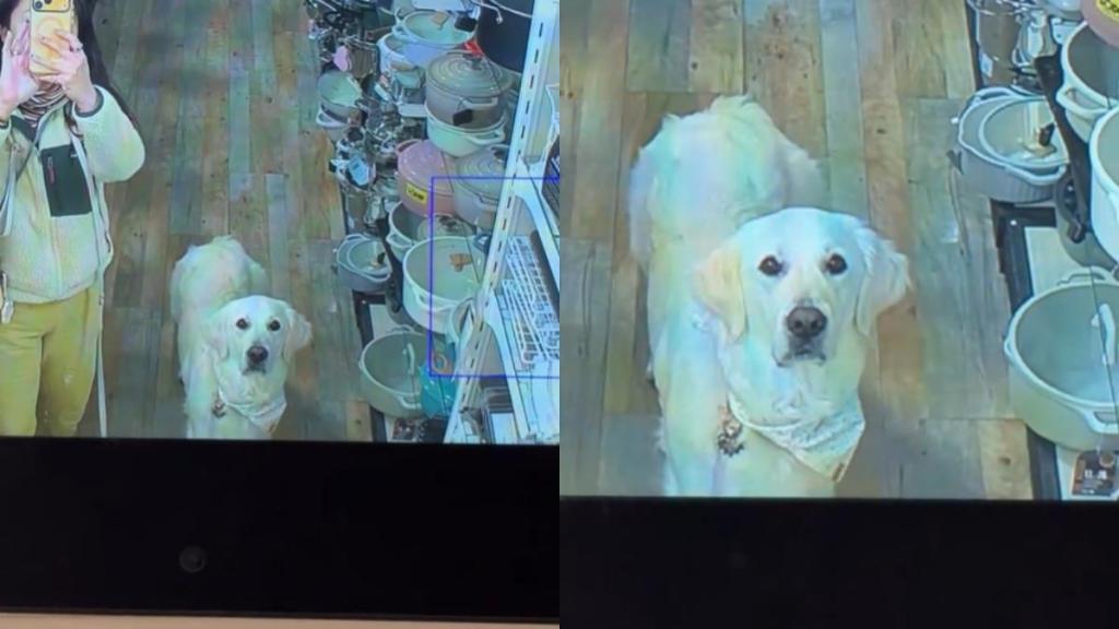 Golden Retriever has a priceless reaction to seeing himself at the store’s video monitor