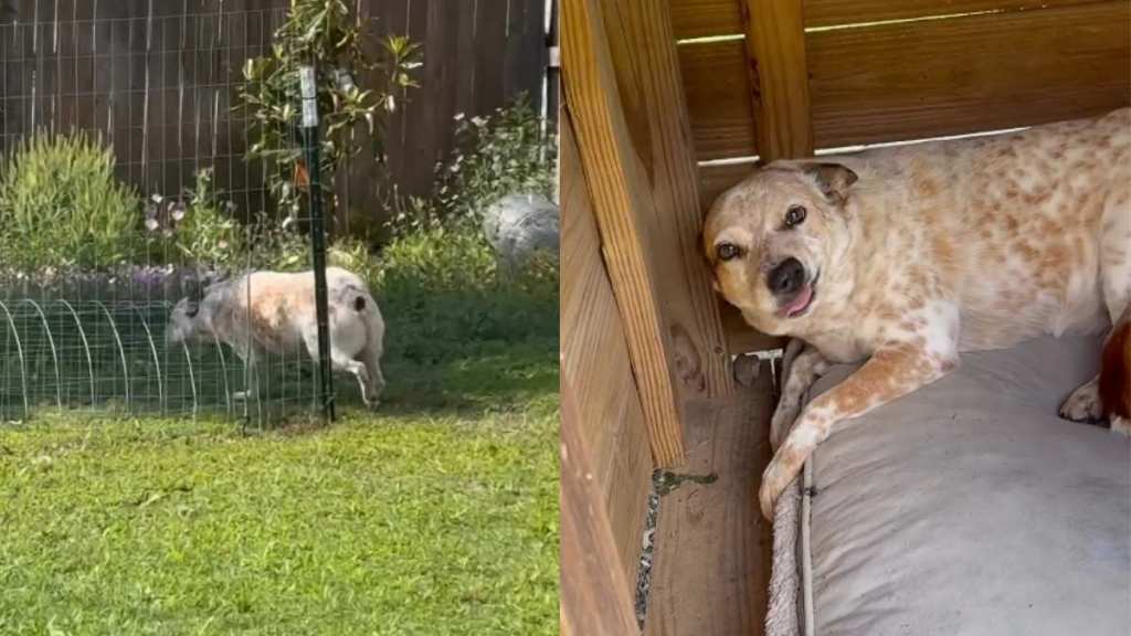 Video captures dog’s innocent act after dad catches her sneaking into the garden