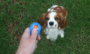 Dawn Rehus, a certified pet training instructor, recommends using a clicker for training because it provides the dog with a consistent sound that he can associate with a positive reward. Clicker training promotes catching behavior; when your dog performs a good behavior, mark it with a click and reward him with a small, healthy treat. “Eventually, the dog will offer the behavior on his own,” Rehus explains. “Then you can attach the cue.”